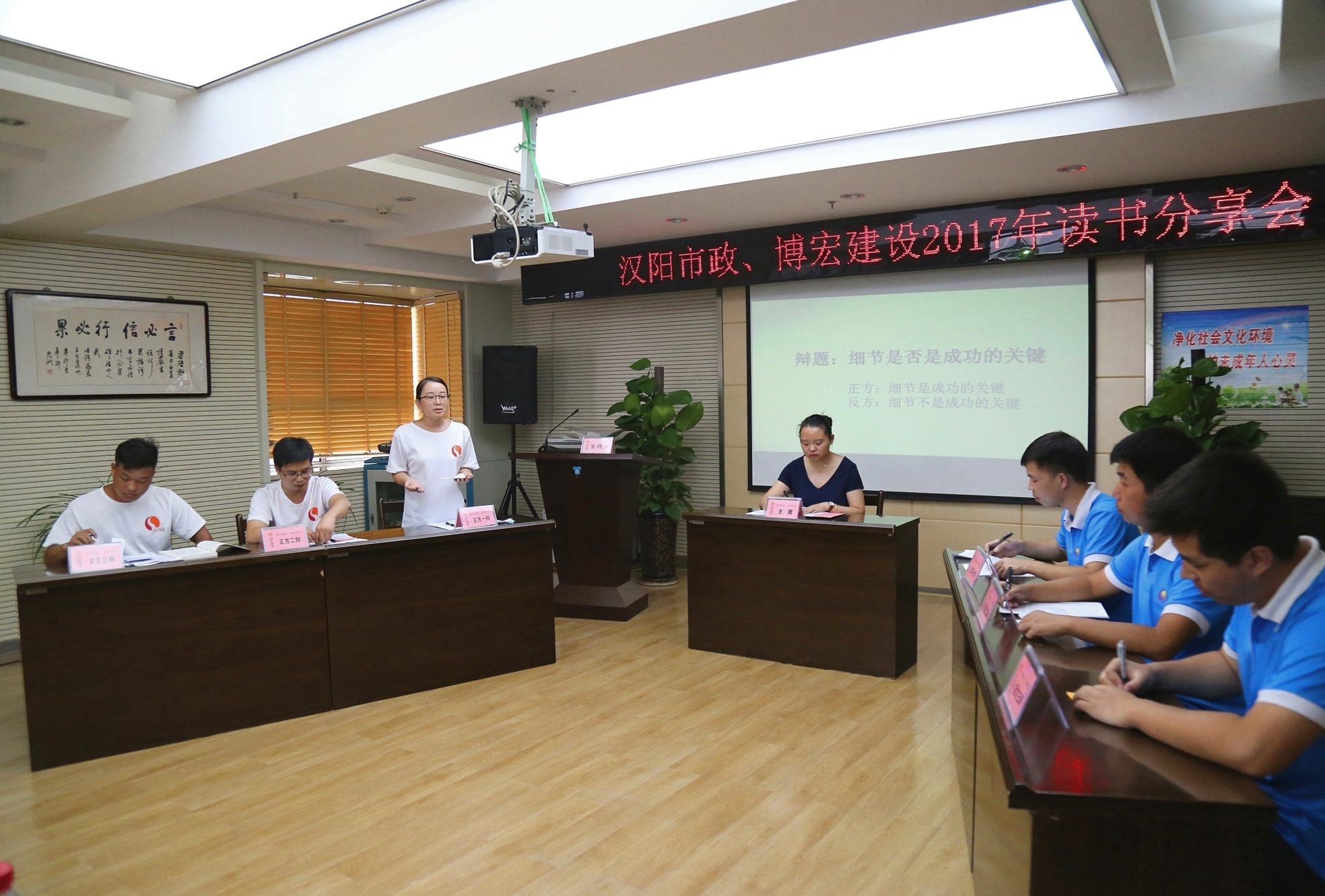歌德曾說:“讀一本好書就是和高尚的人談話。”漢陽市政博宏公司為在全公司營造濃厚的讀書氛圍,打造“書香博宏”,7月31日,一場關(guān)于“細節(jié)”的讀書分享活動在公司大會議室順利召開,集團公司辦公室副主任冷雪、各兄弟單位辦公室主任等均參加了本次活動。