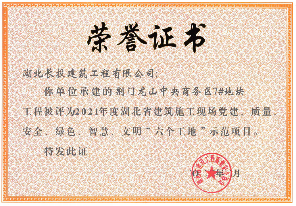 近日,2021年度湖北省建筑施工現(xiàn)場黨建、質(zhì)量、安全、綠色、智慧、文明“六個工地”評比結(jié)果正式公布,全省共計97項工程被評為示范項目,博宏建設(shè)新建商業(yè)服務(wù)業(yè)設(shè)施項目(中南科研設(shè)計中心)和博宏建設(shè)旗下合資公司湖北長投建筑工程有限公司承建的荊門龍山中央商務(wù)區(qū)7#地塊項目雙雙獲獎。