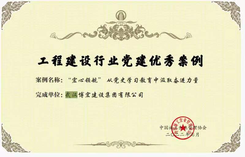 近日,中國施工企業(yè)管理協(xié)會發(fā)布文件,公布了工程建設(shè)企業(yè)黨建工作最佳案例、優(yōu)秀案例,由博宏建設(shè)集團申報的““宏心領(lǐng)航”,從黨史學(xué)習(xí)教育中汲取奮進力量”獲優(yōu)秀案例榮譽。