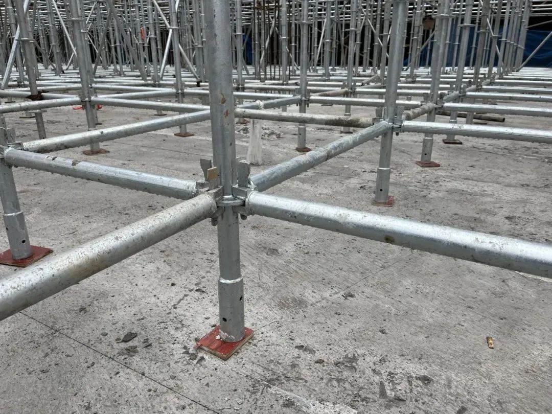 盤扣式腳手架立桿采用低合金結(jié)構(gòu)(國(guó)標(biāo)Q345B),強(qiáng)度高于傳統(tǒng)腳手架碳鋼管(國(guó)標(biāo)Q235)1.5-2倍,主要構(gòu)件采用內(nèi)外熱鍍鋅防腐工藝,既提高了產(chǎn)品壽命,又做到了外觀整潔、美觀。