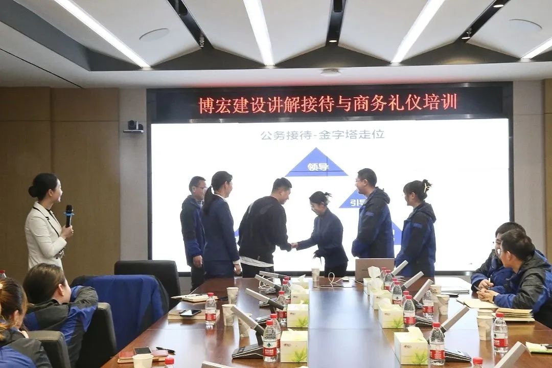 為提高公司會(huì)議及接待水平,提升員工綜合素質(zhì),塑強(qiáng)公司品牌形象。2月9日下午,博宏建設(shè)集團(tuán)在會(huì)議室組織開(kāi)展了以“接待與商務(wù)禮儀”為主題的專(zhuān)題培訓(xùn),公司特邀知?jiǎng)?chuàng)禮學(xué)院首席培訓(xùn)導(dǎo)師、項(xiàng)目策劃師安娜老師授課。