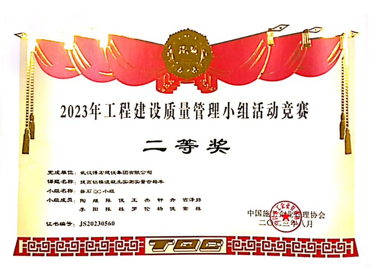 項(xiàng)目榮獲2023年上半年武漢市建筑施工安全標(biāo)準(zhǔn)化示范工地、國家級(jí)QC二等獎(jiǎng)、多次獲得流動(dòng)紅旗等多項(xiàng)榮譽(yù),以優(yōu)質(zhì)履約擦亮品牌底色,用守諾踐諾講好博宏故事,在匠心傾注中賦能美好生活!