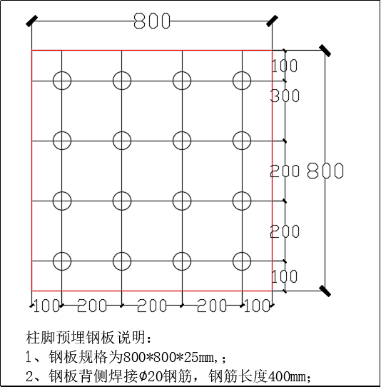 |柱腳預(yù)埋件節(jié)點(diǎn)示意圖