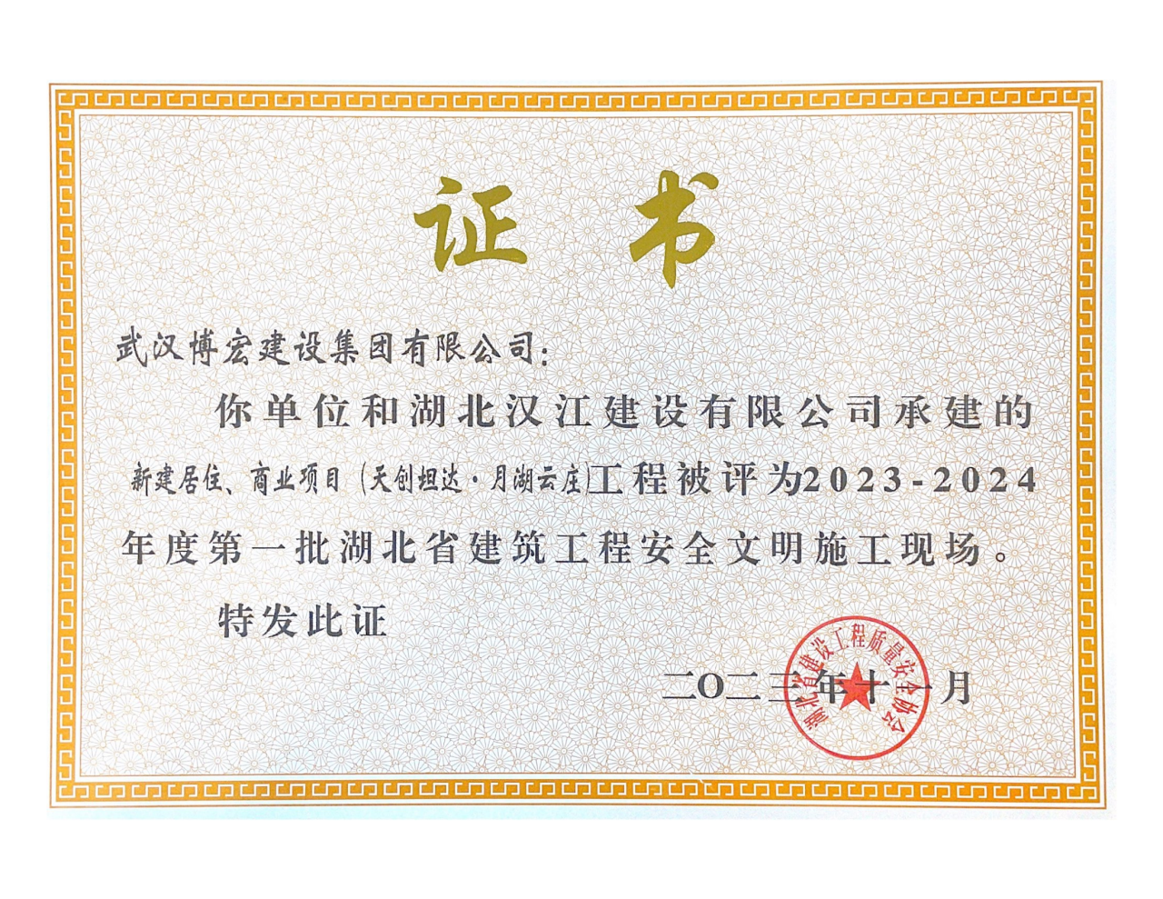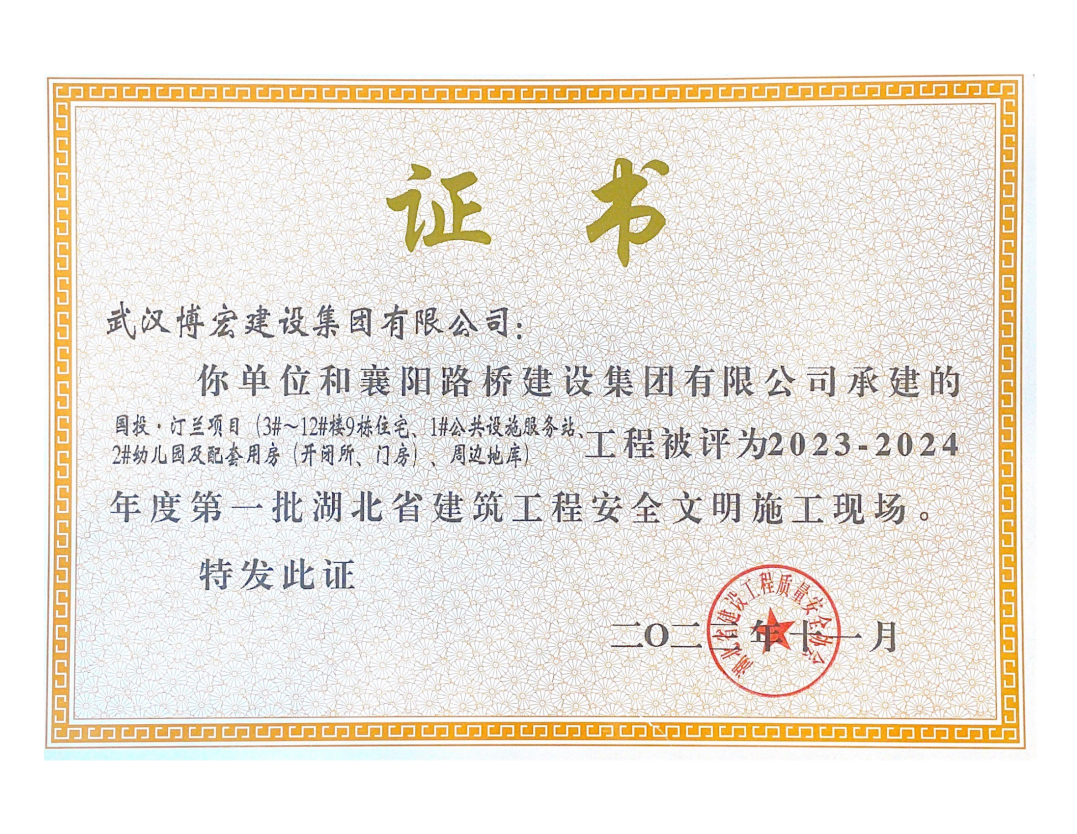 近日,湖北省建設(shè)工程質(zhì)量安全協(xié)會公布了2023-2024年度第一批湖北省建筑工程安全文明施工現(xiàn)場名單,由博宏建設(shè)集團(tuán)承建的隨州市中心看守所辦公區(qū)、監(jiān)區(qū)及配電房;黃金口產(chǎn)業(yè)園商業(yè)設(shè)施、居住、公園綠地建設(shè)項目;新建工業(yè)項目(漢陽市政科研中心)(EPC)等8項工程獲評湖北省建筑工程安全文明施工現(xiàn)場。